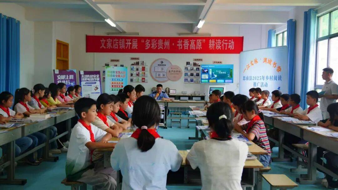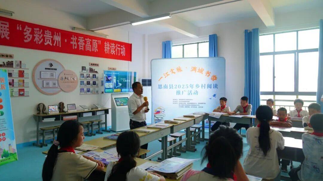 活动现场,铜仁市新华书店有限公司思南县分公司率先带来 “书香厚礼”—— 一批精心挑选的优质书籍被送入红旗村数字农家书屋,为这座乡村 “精神粮仓” 注入新活力。书店负责人现场鼓励学生“多读书、读好书”,话语里满是期许,也让在场师生对未来的阅读时光充满期待。