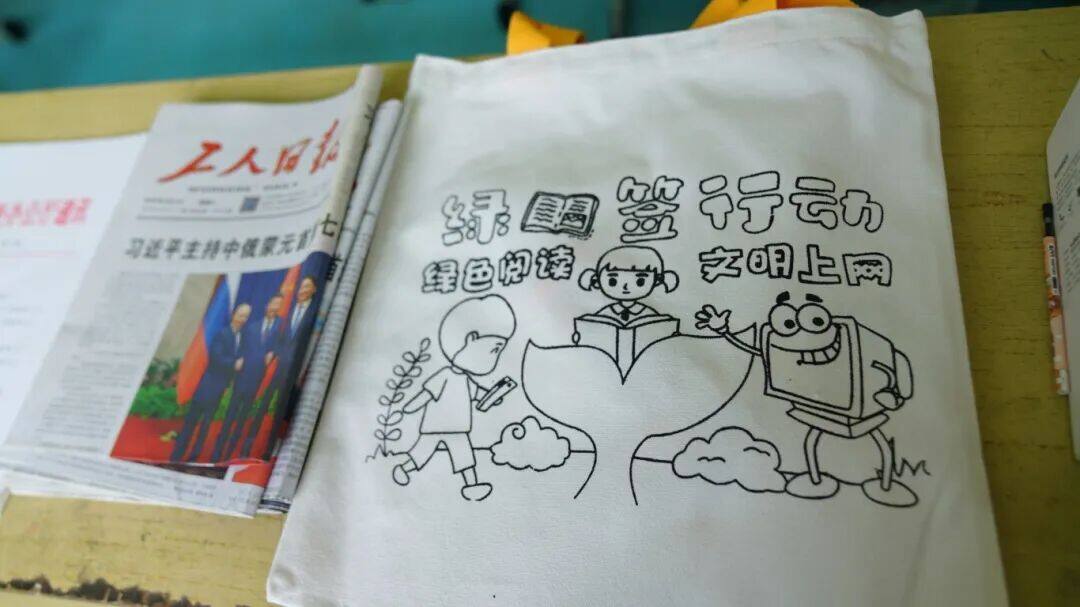 活动氛围在互动环节中推向高潮。有奖问答环节,大家争相举手抢答, 一个个问题被快速解答,知识点在趣味互动中牢牢扎根;“扫黄打非?护苗”帆布袋与绿书签 DIY 环节更成了孩子们的 “创意乐园”,孩子们发挥创意,独特的手工作品不仅成为专属纪念,更让“抵制有害信息、守护健康成长”的意识深深印在心中。