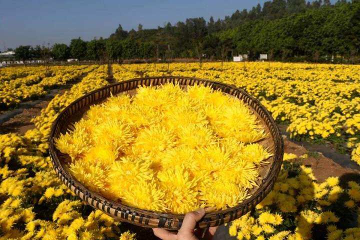 目前,金丝皇菊基地已初步形成菊花种苗选育、栽培研发、能源烘干、包装、销售等产业链。通过精心培育,金丝皇菊今年也迎来了第一波丰收,预计创收30余万元,吸纳当地45名群众就业。