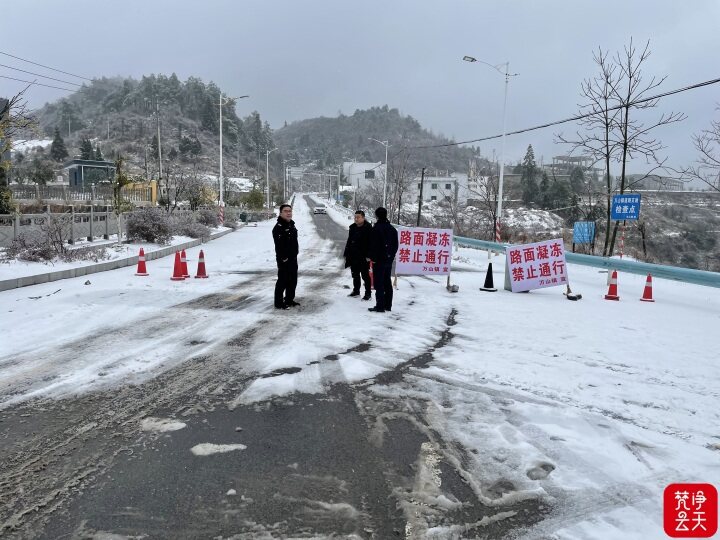 近日,万山区万山镇多处路段发生凝冻,万山镇党委班子立即行动,24小时值班值守抗凝保畅,确保群众安全出行。
