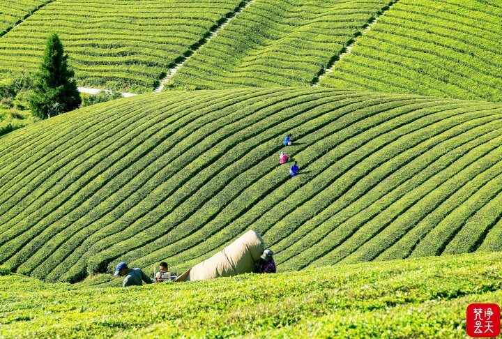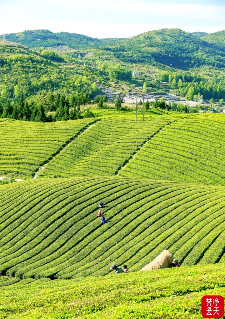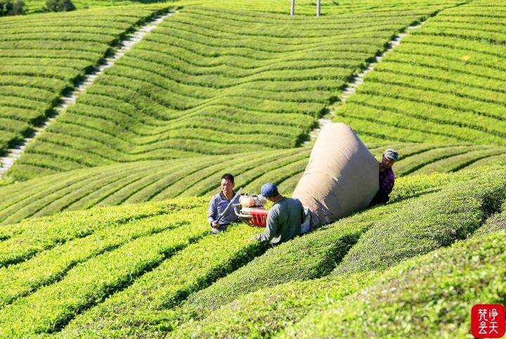 5月4日,沿河土家族自治县谯家镇茶园,工人在采收茶叶。