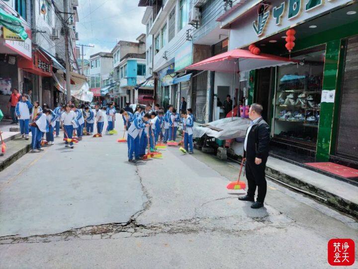 在瓮溪中学门口至车站的道路上,三五成群的学生在老师的带领下,拿着各种劳动工具对路边的垃圾进行清理?!懊扛鋈硕加Ω檬髁⒈;せ肪车脑鹑我馐?,通过全镇环境卫生整治活动,学生们意识到了乱扔垃圾的坏处以及爱护环境的重要性,活动效果比在课堂上口头教育要好得多?!蔽拖蛉舜笾飨旖?。