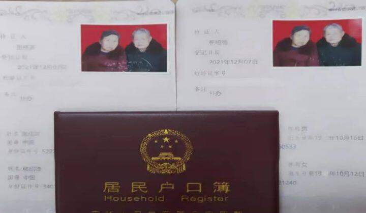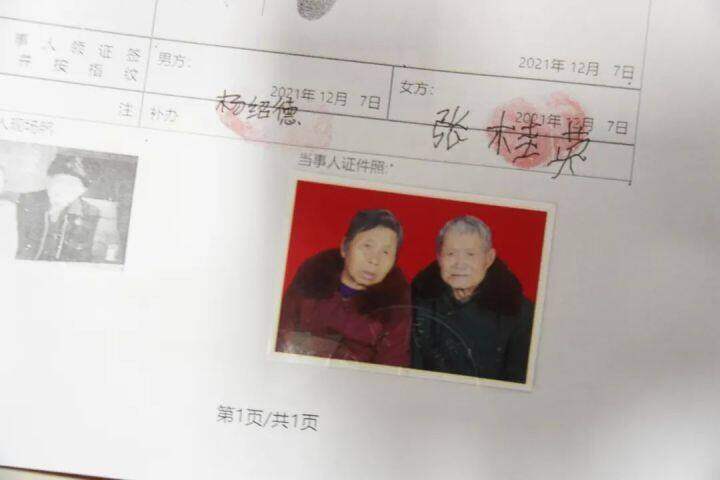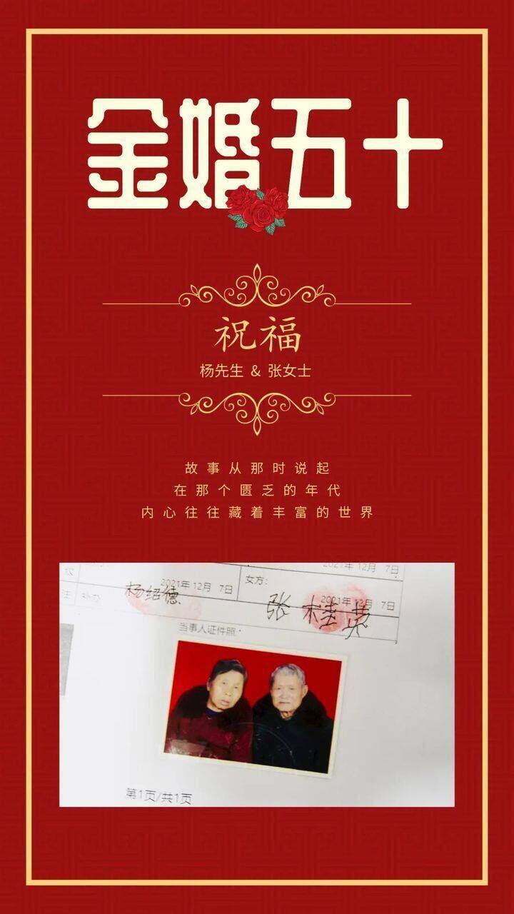 杨绍德、张桂英两老口。 爷爷奶奶辈的爱情婚姻 在他们那个年代 婚姻更多是 父母之命、媒妁之言 他们在粗茶淡饭、平平淡淡之中 产生了朴素的感情 这对风风雨雨走过 近50多年的老两口 终于领到他们补办的结婚证 让我们祝福这对金婚夫妻 也感谢江口县民政局的用心 为老两口送上了 金婚纪念的"礼物"