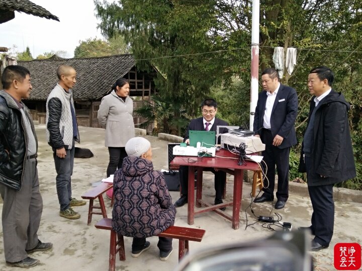 思南农商银行员工下乡为老年客户办理业务。