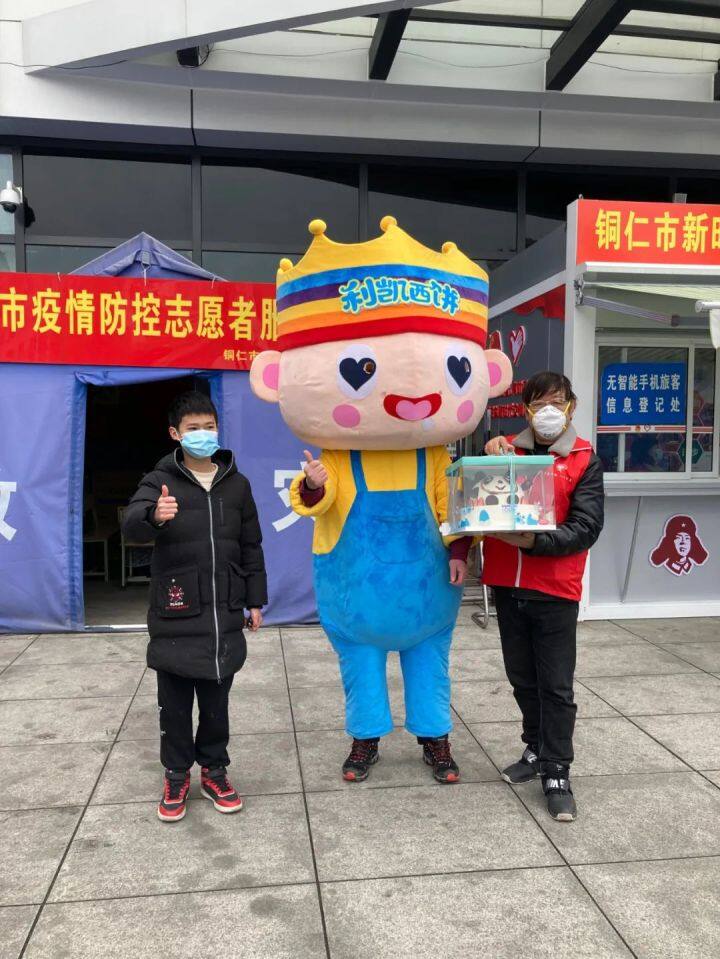 近日,特意装扮成卡通人物的爱心人士拎着造型可爱的蛋糕,蹦蹦跳跳地来到铜仁火车站疫情防控志愿服务卡点,为志愿者谢晓林送去了一个意外的生日惊喜。